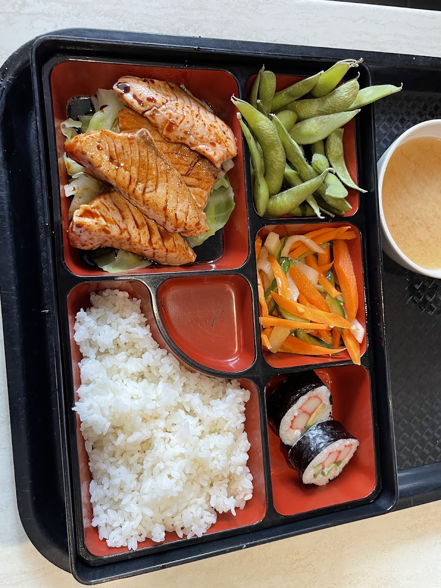 One of the restaurant's standout dishes is the Spicy Coco Ramen, a deliciously aromatic bowl of noodles bathed in a rich, coconut-based broth with a perfect balance of heat. For those craving a complete meal, the Teriyaki Salmon Bento and Teriyaki Chicken Bento Box are both excellent choices. Each bento is thoughtfully prepared, with tender salmon or chicken served alongside flavorful rice, fresh vegetables, and a variety of small accompaniments that make every bite an enjoyable experience.